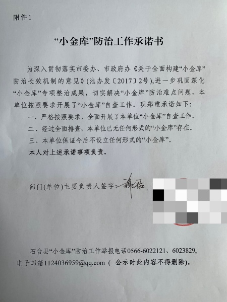 关于石台县公立医院“小金库”防治工作承诺书公示